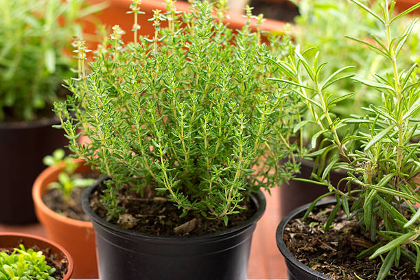 창턱에 있는 화분에서 집에서 타임 씨앗을 키우는 방법