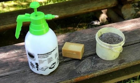 암모니아(물 한 통에 제품 2큰술을 넣어야 함), 가문비나무 바늘(가문비나무 약용 오일로 대체 가능), 소다(소다 한 스푼을 따뜻한 물 1리터에 녹이고 비누 조각을 몇 개 첨가함)를 함유한 조성물은 진딧물 퇴치에 좋은 결과를 보였습니다.