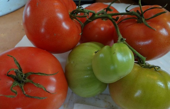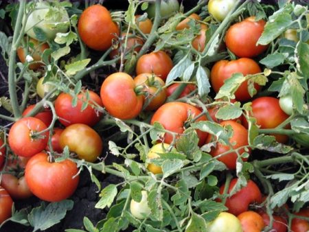 대부분의 정원사들은 덤불에 지지대를 설치하는 것을 권장합니다. 덤불이 많은 양의 열매를 감당하지 못하고 땅으로 축 늘어져 토마토가 썩기 때문입니다. 열매는 시큼하고 달지는 않지만 풍부한 맛을 가지고 있습니다.