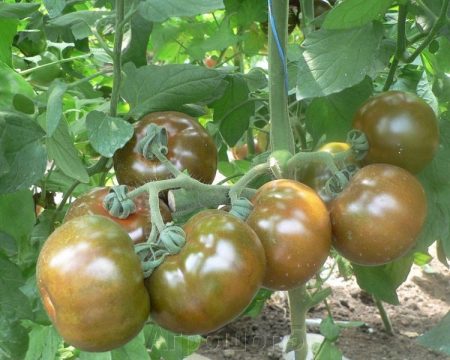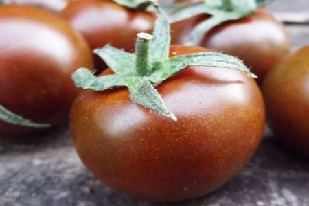 오래전부터 다양한 교배종을 키우기 시작했어요. 수확량도 많고 병에 잘 걸리지 않아서 좋아해요. 특히 "아쉬켈론" 품종은 과일 색깔이 눈길을 사로잡았어요. 제 정원에서 이렇게 아름다운 토마토를 키워본 적은 처음이에요. 잘 익은 토마토는 진한 체리색을 띠고, 멀리서 보면 검은색으로 보이는 것도 있었어요. 맛은 괜찮지만, 특별할 건 없어요. 토마토는 그냥 토마토일 뿐이니까요. 껍질이 두꺼워서 오래 보관할 수 있어요. 과일은 특별히 과즙이 많지는 않지만, 단점은 찾을 수 없어요. 모든 게 다 마음에 들었어요.