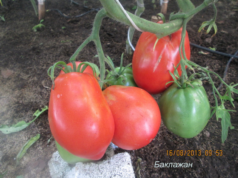 "가지" 토마토를 처음 키워봤어요. 키가 1.5미터 정도 컸는데, 묘목을 땅에 심었어요. 열매는 많이 열렸지만 줄기가 완전히 뒤덮이지는 않았어요. 토마토는 크고 과육이 풍부하며 달콤해요. 당도는 분홍색 토마토에 버금가죠. 유통기한은 보통이에요. 익은 토마토는 일주일 반 정도 보관할 수 있었고, 그 후부터는 새어 나오기 시작했어요. 저는 이 품종에 만족해서 친구와 이웃들에게도 추천하고 있어요.