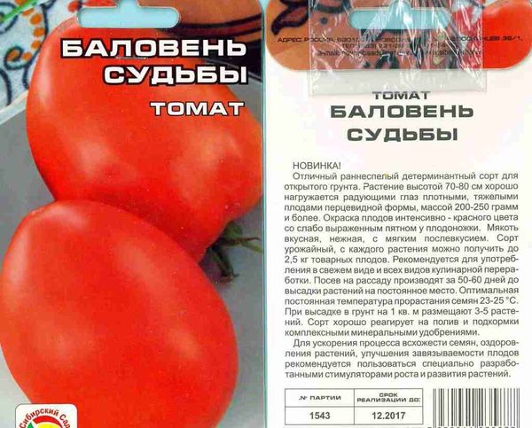 "운명의 달링"은 조기 숙성 품종으로, 토마토는 70~80cm 높이로 자랍니다. 이 토마토는 노지 재배에 적합합니다. 잎은 중간 크기이며, 씨방은 송이형으로, 한 송이에서 토마토가 4~6개 열립니다.