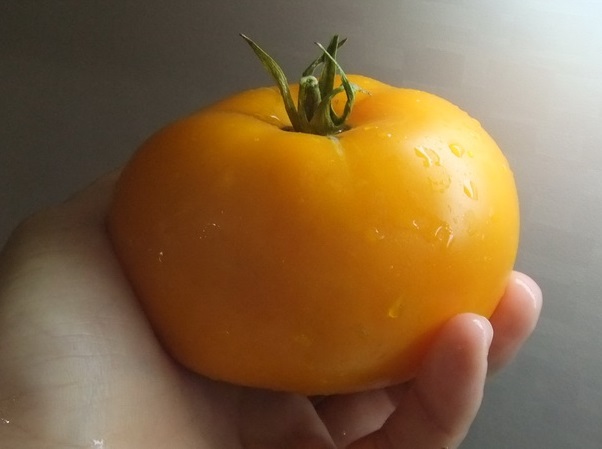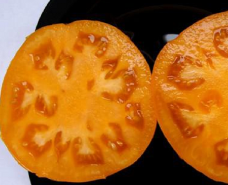 "보츠카 묘다(Bochka Myoda)" 품종의 열매는 황주황색입니다. 납작하고 둥글둥글한 모양은 마치 작은 꿀통을 연상시킵니다. 과육은 노란색보다는 주황색에 가깝고, 단단하고 즙이 많으며 씨가 거의 없습니다. 이 토마토는 달콤한 맛으로 유명합니다. 껍질은 매끄럽고 줄기 근처에 약간의 골이 있습니다. 토마토 한 개의 무게는 200~400g입니다.