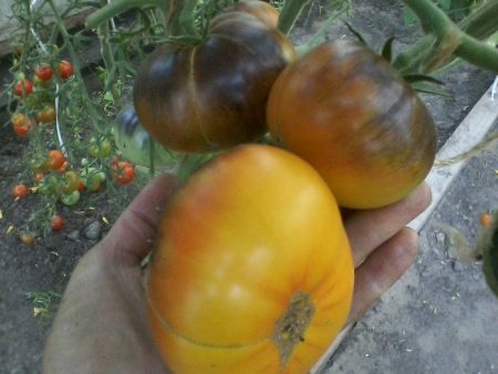 토마토는 실망스럽지 않았어요. 새콤달콤한 맛이 아니라 기분 좋은 맛이에요. 샐러드에 다른 채소와 잘 어울려요. 친구한테 이 품종에 대해 듣고 먹어보게 해줬어요. 색깔도 정말 놀라웠어요. 내년에는 꼭 심어봐야겠어요.