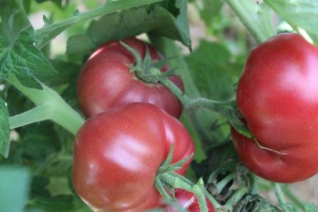 과일은 적갈색, 짙은 분홍색, 또는 갈색빛이 도는 자주색을 띱니다. 과육은 분홍색이며 맥이 없습니다. 껍질은 촘촘하고 얇으며 매끄럽고 갈라지지 않습니다. 토마토 끝에 마른 반점이 생길 수 있지만, 품질에는 영향을 미치지 않습니다. 과일이 처음에는 부드러워졌다가 나중에 색이 변하기 시작하는 것은 드문 일이 아닙니다.