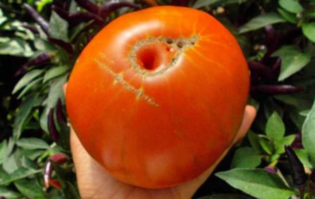 저는 그 품종이 마음에 들었습니다. 여름이 매우 추웠는데, 낡은 창틀로 만든 온실(별로 따뜻하지 않았죠)에서 잘 자라서 훌륭한 열매를 맺었습니다. 한 덤불에서 800~900g짜리 아주 큰 토마토 두 개, 250~300g짜리 다섯 개, 그리고 작은 토마토 몇 개를 수확했습니다. 이런 재배 조건에서도 훌륭한 결과를 얻었습니다. 온실에서 키운 토마토 중 가장 달콤하고 즙이 많았습니다. 가족들이 이 새로운 품종을 정말 좋아했습니다.