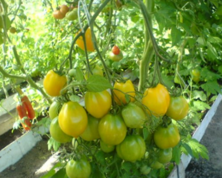 "정말 멋진 품종이에요. 이름도 딱 맞죠! 처음엔 실수로 잘못 골라서 우연히 발견했어요. 다른 품종의 씨앗이 있을 거라고 예상했던 곳에 토마토가 심어져 있었거든요. 토마토를 심었는데, 예상했던 불스 하트(Bull's Heart) 대신 전혀 예상치 못한 무언가가 갑자기 자라는 모습을 상상해 보세요. 이 품종은 중간 시기에 자라서 두 송이를 이루었는데, 세 번째 송이가 꽃을 피우고 줄기로 이어졌어요. 송이에 약 백 송이의 꽃이 피었지만, 곧이어 지고 마흔 송이가 익었어요. 물론 토마토라는 걸 알았지만, 익은 열매를 보고 나서야 무슨 품종인지 짐작할 수 있었어요. 정말 "세상의 기적"이죠. 작고 아름다운 노란 토마토들이죠. "작다"라고 하는 이유는 불스 하트(Bull's Heart)를 기대했기 때문이에요. 이제 다시 심어야겠어요. 정확히 어떤 품종인지 알고 조금 다르게 가꾸어야겠어요."