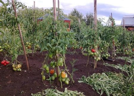 8월에는 1.5m 높이에서 토마토를 꺾습니다. 이때쯤이면 수확량의 절반이 이미 수확되어 병에 담겨 있습니다. 하지만 덜 익은 토마토 송이는 아직 매달려 있습니다. 토마토는 서리가 먼저 내리지 않는 한 10월 중순까지 익을 수 있습니다. 열매는 더 이상 보기 좋지 않지만, 11월 말까지는 먹을 수 있을 거예요!