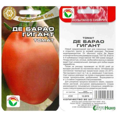 데 바라오 자이언트는 과일이 꽤 맛있는 좋은 품종입니다. 하지만 꽤 오래된 품종입니다. 저는 더 현대적이고 발전된 품종을 선호합니다. 작년에는 5월 6일에 최신 품종을 야외에 심었는데, 모든 것이 잘 자랐고 수확도 아주 좋았습니다! 저는 사마라에 살고 있습니다.