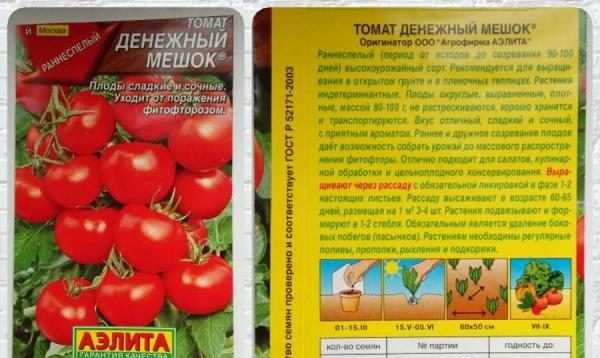머니백은 일찍 익고 생산성이 높은 토마토 품종으로, 온실이나 노지 재배에 적합합니다. 최대 1.8m 높이까지 자라는 이 토마토 덤불은 지지대와 꼬집기가 필요합니다. 토마토를 1~2줄기씩 심으면 수확량이 가장 좋습니다. 열매는 15개씩 송이로 익습니다.
