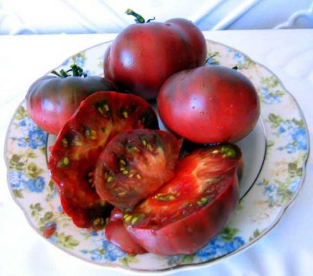 "와일드 블루 카드" 품종은 그 독특한 색깔에 매료되었습니다. 빨간색이나 분홍색 토마토를 심는 데 익숙하지만, 이 특이한 자줏빛 붉은색 토마토를 보고 한번 해보고 싶어졌습니다. 한 팩을 사서 시험해 봤습니다. 열 개의 씨앗 중 여덟 개가 싹을 틔웠습니다. 이탄 화분에 심었습니다. 다른 키 큰 토마토처럼 돌보았습니다. 흙을 푸르고, 곁순을 꺾어내고, 묶어준 후 물을 주었습니다. 열매는 중간 크기로 자랐지만, 몇몇 덤불에는 큰 열매가 몇 개 있었습니다. 맛은 보통이었고, 특이한 점은 없었습니다. 토마토 색깔도 만족스러웠습니다. 수확량은 좋았지만 높지는 않았습니다. 내년에 이 품종을 다시 주문할 생각입니다.