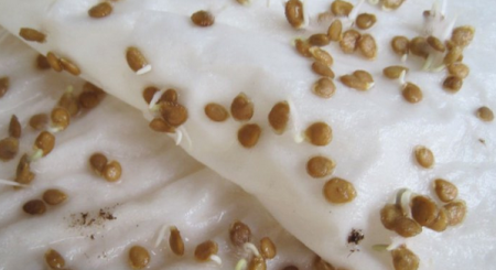 이 경우 필요한 단계는 발아뿐입니다. 발아를 위해서는 파종 5~7일 전에 씨앗을 물에 적신 천 위에 놓고 싹이 날 때까지 지정된 시간 동안 그대로 두십시오. 씨앗이 터지면 안전하게 땅에 심을 수 있습니다.