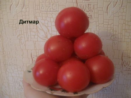이 품종의 가장 큰 장점은 8월 말까지 열매가 맺히는 조기 결실입니다. 디트마르 품종은 분홍색 과육을 가진 붉은 토마토를 생산합니다. 이 토마토는 샐러드, 주스, 피클용으로 적합합니다.