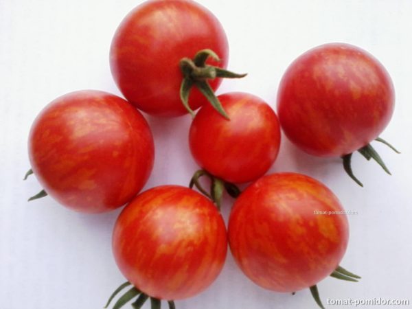 듀오 토마토는 중조생 품종입니다. 수풀은 키가 2미터에 달합니다. 열매는 지름 4cm에 무게 60g으로 작습니다. 토마토는 수박과 비슷한 독특한 색깔을 띠고 있습니다. 이 품종은 수확량이 많아 한 송이에 최대 25개의 열매가 맺힙니다. 발아 후 111일째부터 수확을 시작할 수 있습니다.