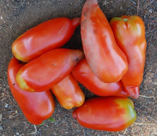 과일을 횡단면으로 살펴보면 씨앗실의 수가 매우 적다는 것을 알 수 있습니다. 이 토마토는 소스를 만들기에 적합합니다.