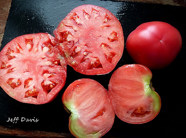 "저는 분홍색 토마토를 좋아해요. 특히 제프 데이비스 품종을 좋아해요. 관리가 쉽고 해충과 질병에 강해요. 열매가 크고 달콤하면서도 은은한 신맛이 특별한 풍미를 더해요. 이 토마토는 생으로 먹어도 좋고, 통조림으로 먹어도 좋고, 주스로 만들어 먹어도 좋아요."