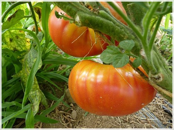 식물은 10~20cm 간격으로 넓은 천 조각으로 묶습니다. 줄기의 성장을 방해하지 않도록 주의해야 합니다. 그렇지 않으면 이 부분에서 썩기 시작할 수 있습니다. 큰 열매가 맺히면 토마토 줄기도 묶어 완전히 익도록 하여 부담을 어느 정도 덜어줍니다.