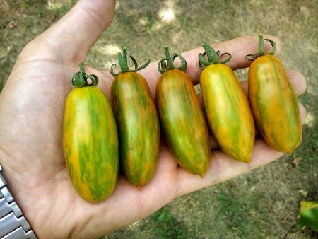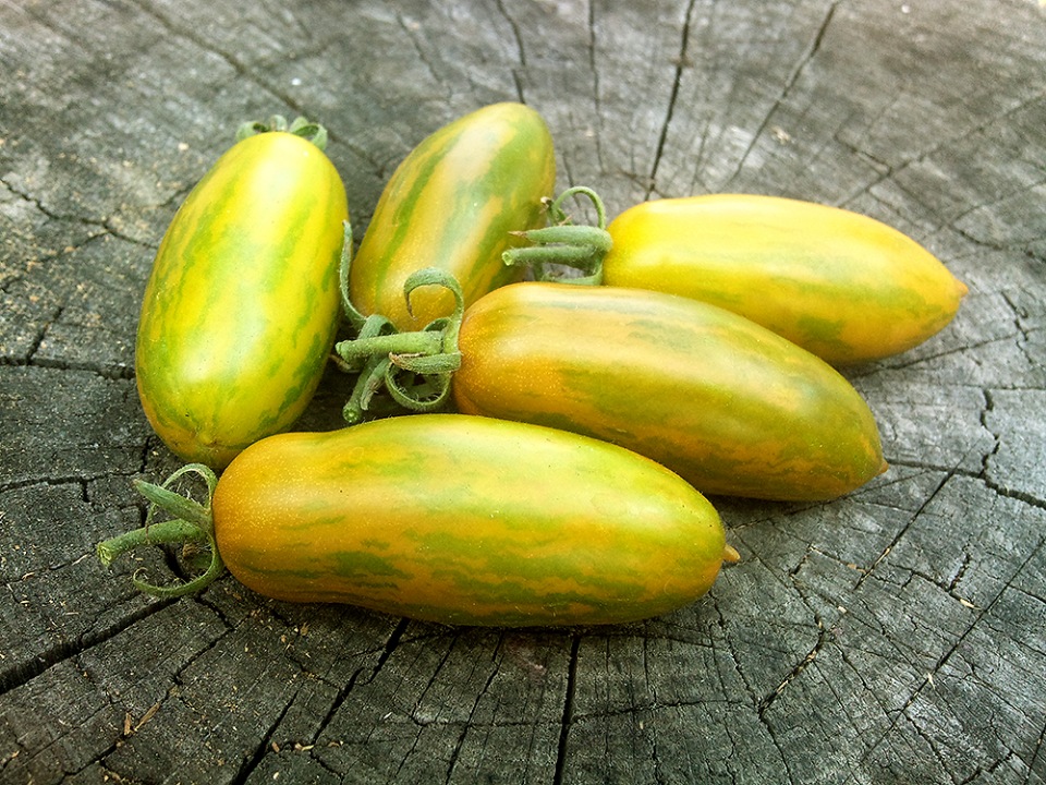 이 품종을 처음 키워봤는데, 토마토 맛이 매콤하면서도 살짝 시큼합니다. 익으면 연한 주황색 줄무늬가 생깁니다.