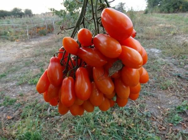 토마토는 기술적으로는 밝은 빨간색이지만, 생물학적으로는 밝은 녹색을 띱니다. 껍질은 윤기가 나고 매끄러우며 고르고, 씨앗이 적습니다. 토마토는 덩굴에서 자라며 큰 송이를 형성합니다. 열매 하나의 무게는 약 40~65g이고 길이는 6~8cm입니다. 한 덤불에서 최대 7kg까지 수확할 수 있습니다.