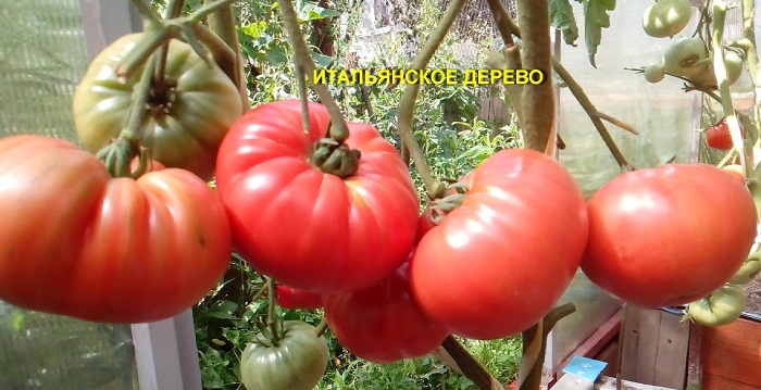 품종이 정말 훌륭합니다. "이탈리안 트리"를 온실과 화단에 심어 봤는데, 흥미로운 실험이었습니다. 덤불을 두 줄기로 나눠 키웠는데, 정원에 심은 토마토가 조금 더 컸지만 수확은 아주 좋았습니다. 7월 말 온실에서, 그리고 2주 후 야외에서 익었습니다. 토마토는 병충해가 없었고, 덤불은 거의 2미터까지 자랐으며, 과일 맛도 정말 훌륭했습니다. 강력 추천합니다.