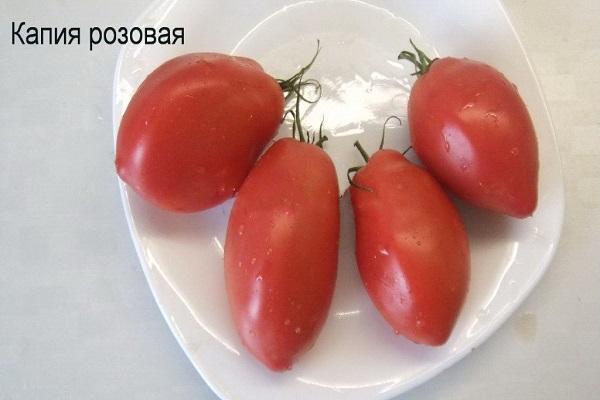 카피아 핑크 토마토 품종의 열매, 특징, 설명, 그리고 후기는 그저 기분 좋은 인상만 남깁니다. 길쭉하고 끝이 약간 뾰족합니다. 토마토의 외관은 마치 눈물방울과 같습니다. 토마토 내부에는 최대 5개까지 작은 곁가지가 있습니다. 색깔은 분홍색이며 줄기에는 변색이 없습니다. 열매 하나의 무게는 최대 150g입니다. 덩굴 하나에 최대 10개의 토마토가 열립니다.