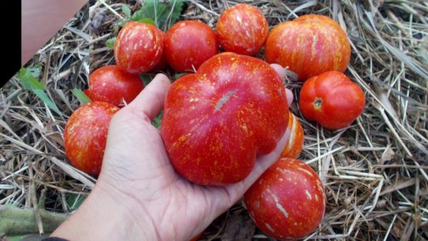 - 놀라운 색깔과 모양을 가진 아름답고 익은 토마토를 얻는다.