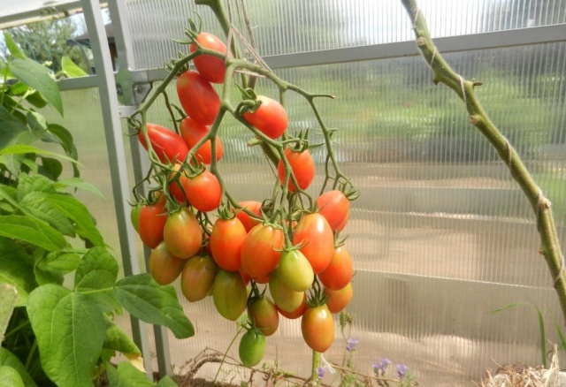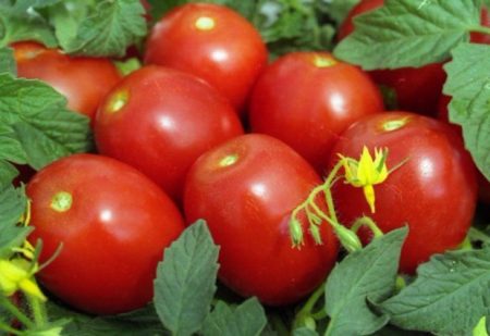 온실에서는 각 덤불에서 토마토를 40개, 노지에서는 25개를 수확했습니다. 토마토는 과육이 아니라 단맛이 아주 강했습니다.