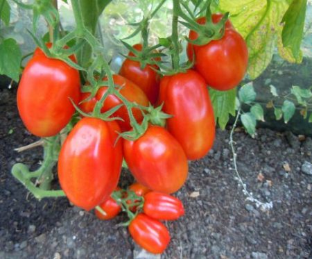이 덤불은 유한생장형으로, 꽃이 피는 동안 식물이 자라지 않습니다. 따라서 덤불은 빽빽하지만 일반적인 형태는 아니며, 중간 크기의 잎을 가지고 있습니다. 잎은 중간 크기이며 정상적인 녹색 색조를 띱니다. 싹은 5~7개 잎 위에 나타납니다. 이후 1~2개 잎마다 송이가 형성됩니다. 각 송이에는 크기가 거의 같은 토마토 6~7개가 들어 있습니다. 열매는 보통 거의 모든 꽃에 맺히며, 열매가 맺히지 않는 꽃은 거의 없습니다.