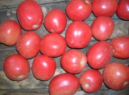 토마토는 진홍색 타원형이며 약간 달걀 모양입니다. 열매 하나의 무게는 85~105g입니다. 껍질은 단단하고 과육은 두껍지 않으며, 달콤하고 약간 시큼합니다. 토마토 하나에는 3~5개의 씨앗이 들어 있으며, 줄기에서 쉽게 떼어낼 수 있습니다.
