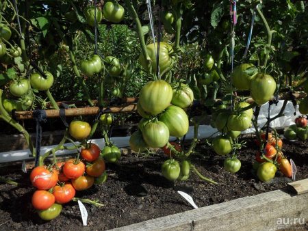 오마르 레바논 토마토 품종에 대한 설명에 따르면, 중생대 성숙과 온실 재배가 이 품종의 두드러진 특징 중 하나입니다. 적절한 관리와 심기를 통해 토마토 한 그루에서 5kg 이상의 열매를 수확할 수 있습니다.