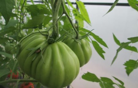 관목에 최종 성장 정지가 없을 때 식물은 미확정 식물로 간주됩니다. 일반적으로 노지에 심으면 관목은 1.2m까지 자라고, 온실에서는 최대 1.7m까지 자라며 평균 높이는 1.5m에 이릅니다. 그러나 매우 좋은 조건에서는 2m까지 자랄 수 있습니다. 관목은 잎이 많지 않고 뿌리는 튼튼하지만 줄기는 다소 약합니다. 따라서 토양이 노출된 경우 바람에 잘 견디도록 묶어 관리해야 합니다. 일반적으로 한 송이에 3~5개의 열매가 맺힙니다. 면적에 따라 1제곱미터를 차지하는 관목은 최대 3개까지만 허용됩니다.