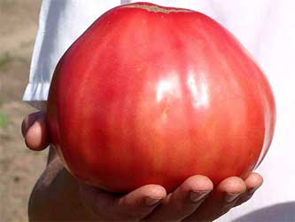 이 토마토 품종의 열매는 납작하고 둥글며 큽니다. 즙이 많고 분홍색이며 매우 달콤합니다. 열매 하나의 무게는 최대 700g까지 나갈 수 있습니다. 이 토마토는 생으로 먹거나 천연 주스를 만들어 먹기에 매우 좋습니다.