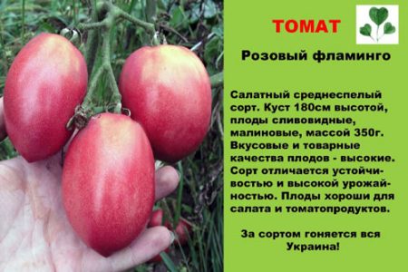 비료, 좋은 토양, 그리고 항상 따뜻한 물을 주는 데 세심한 주의가 필요합니다. 플라밍고는 어떤 정원사의 텃밭이든 아름답게 가꿀 준비가 되어 있습니다. 주변에 무엇이 자라든, 심지어 "동료"인 다른 토마토 품종들 사이에서도 플라밍고는 돋보일 수 있습니다.