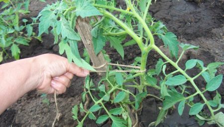줄기, 가지, 그리고 열매 맺는 계절에는 꽃송이까지 묶어 둡니다. 과일의 무게가 상당해서 새싹이 부러질 위험이 있으므로 토마토 송이 아래에도 지지대를 설치합니다.
