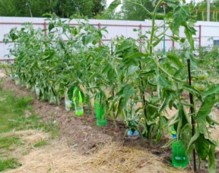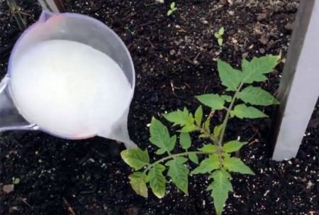 이 토마토에 효모 추출물, 녹색 "칵테일"(발효된 풀 추출물), 그리고 부식산염을 관개하면 탁월한 효과를 얻을 수 있습니다. 니트로포스카는 복합 비료로 사용됩니다.