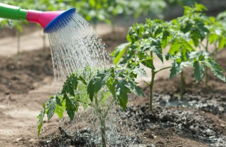 토마토는 물을 자주 주지 않고 넉넉하게 주어 표토층이 흠뻑 젖도록 해야 합니다. 물은 우물, 호수, 연못, 시추공 등 따뜻한 물을 사용해야 합니다. 어떤 물을 사용하든 상관없이, 물은 고여 있고 따뜻해야 합니다.