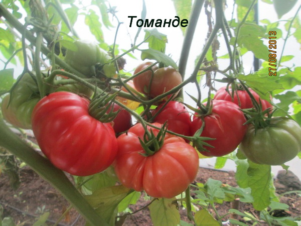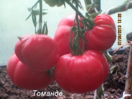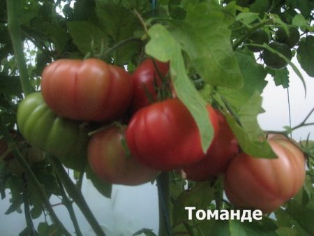 이 품종은 중생종 토마토인 토만데입니다. 미국 육종가들이 개발했으며, 온실 재배에 적합합니다.