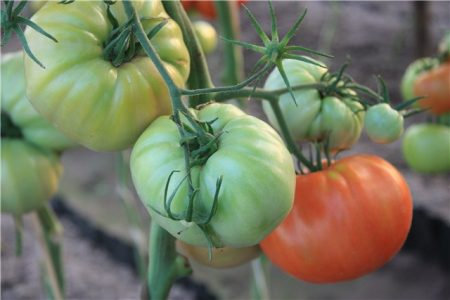앞서 언급했듯이 이 품종에서는 측근을 뽑아낼 필요가 없습니다. 하지만 지지대를 설치하고 식물을 묶어주는 것도 나쁘지 않습니다. 작은 덤불은 많은 열매를 지탱하는 데 어려움을 겪을 수 있으며, 쓰러질 수도 있습니다. 각 덤불 근처에 지지대를 설치하면 충분히 지지할 수 있습니다.