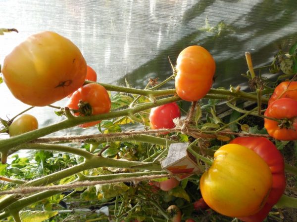 - 덤불은 키가 크고, 평균 높이는 1.80cm로, 농부들은 토마토가 자라면서 지지대를 조정해야 합니다.