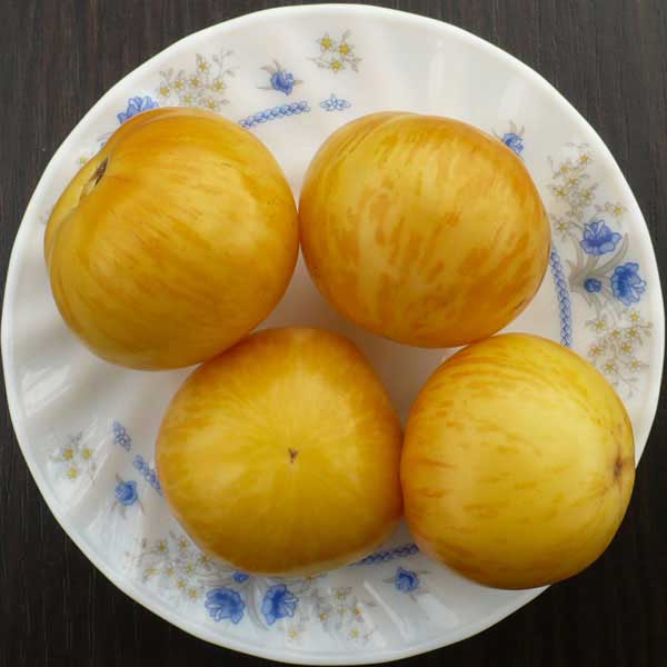 - 토마토는 익으면 밝은 노란색이 되고, 어떤 토마토는 작은 황금색 줄무늬가 생깁니다.