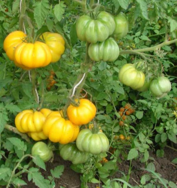 키가 큰 수풀은 종종 2미터에 달합니다. 하지만 노랑 골판지 토마토의 평균 높이는 1.70~1.80cm입니다. 이러한 크기를 고려하면 가지가 변형될 위험이 있다는 것은 놀라운 일이 아닙니다. 따라서 정원사들은 안정적인 지지대와 끈을 만들기 위해 많은 노력을 기울여야 합니다. 중간 크기의 잎이 많기 때문에 때때로 솎아내기가 필요합니다. 솎아내기는 토마토 관리를 간소화하고, 수확을 빠르고 쉽게 하며, 질병 위험을 예방합니다.