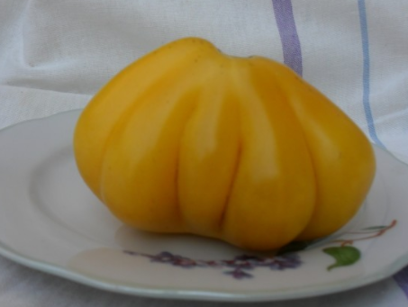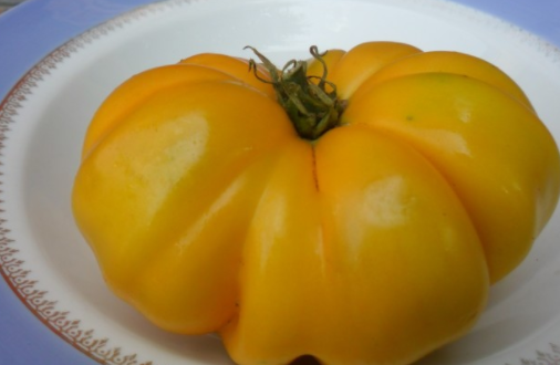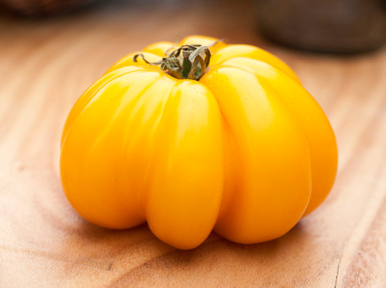 노란 골진 토마토는 달콤한 맛이 납니다. 샐러드를 썰어 먹기 좋고 속을 채워 넣기에도 좋습니다. 요리하는 동안 모양이 그대로 유지됩니다.