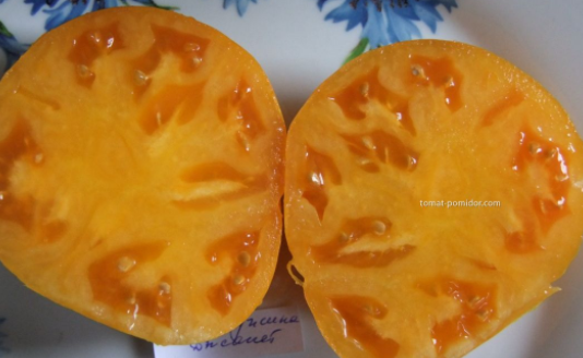 이 토마토 덤불은 다른 토마토 품종과 외관상 크게 다르지 않습니다. 잎은 중간 크기이며 토마토처럼 녹색입니다. 열매는 크고 과육이 풍부하며 즙이 많습니다. 익지 않은 토마토는 녹색입니다. 익은 토마토는 아름다운 분홍빛이나 붉은색을 띱니다. 과육은 연한 붉은색입니다. 씨앗 수는 보통 수준입니다.