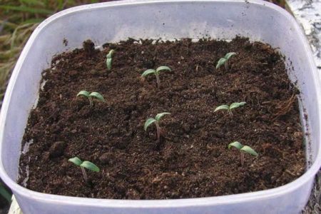 다음 2주 동안 묘목은 완전한 휴면 상태, 따뜻함, 그리고 빛 속에서 발아합니다. 주기적으로 따뜻하고 고인 물을 주고 통풍을 잘 시켜 수분 정체를 방지합니다. 완전히 열린 잎이 두 장 나오면 묘목을 뽑아내어 각 덤불을 개별 컵에 옮겨 심습니다.