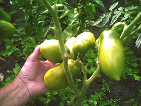 덤불은 무한생장형이므로 7월 초순에 꼭대기를 조심스럽게 꼬집어 주는 것이 필수적입니다. 이렇게 하면 영양분이 과일의 성장과 잎의 밀도를 높이는 데 도움이 되지 않고, 과일의 발달과 숙성에 집중됩니다. 토마토는 각 무리에 4~6개씩 무리 지어 심습니다. 첫 번째 무리는 일곱 번째 잎 위에 형성되고, 그 이후의 무리는 세 잎 후에 형성됩니다. 덤불이 과일의 무게를 지탱할 수 있도록 묶어야 합니다. 덩굴을 주로 지지하는 격자가 가장 좋은 방법입니다.