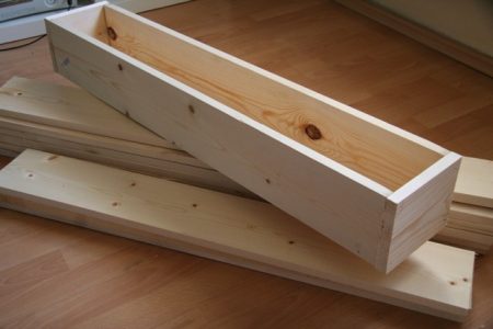 묘목 상자는 나무나 합판으로 만들 수 있습니다. 제작 후, 부패 방지를 위해 건성유를 바르고 페인트칠을 합니다. 사용하기 전에 플라스틱이나 오일클로스 라이너를 안에 넣습니다. 이 디자인의 장점은 창턱에 딱 맞게 용기를 맞춤 제작할 수 있다는 점과 저렴한 가격입니다. 단점은 플라스틱에 비해 무게가 훨씬 무겁다는 것입니다.