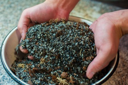 - 잎 흙, 모래, 이탄, 부식질을 2:2:1:3의 비율로 섞은 것