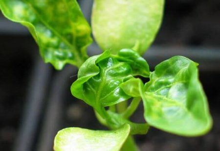 토양에 영양분이 풍부하지만 따뜻함과 햇빛이 부족하면 고추 묘목의 어린 잎이 위로 말리는 현상이 관찰됩니다. 이로 인해 식물이 쭉 뻗고, 연약한 잎의 생화학적 과정이 느려집니다.