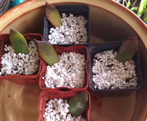 - 다육식물의 아랫줄에서 큰 잎 한 장을 골라서 떼어냅니다.