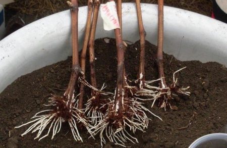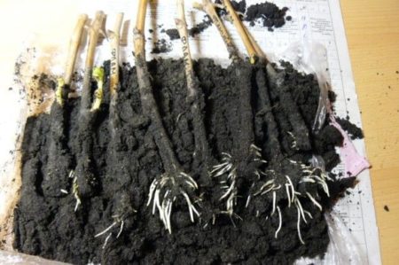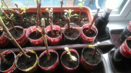 푸젠코의 방법에 따르면, 준비된 꺾꽂이 끝부분을 젖은 천으로 감싼 후 비닐로 덮습니다. 꺾꽂이 끝부분은 그대로 두고, 꺾꽂이 끝부분이 빛을 향하도록 캐비닛 위에 놓습니다. 2~3주 후 작은 뿌리가 자랍니다.